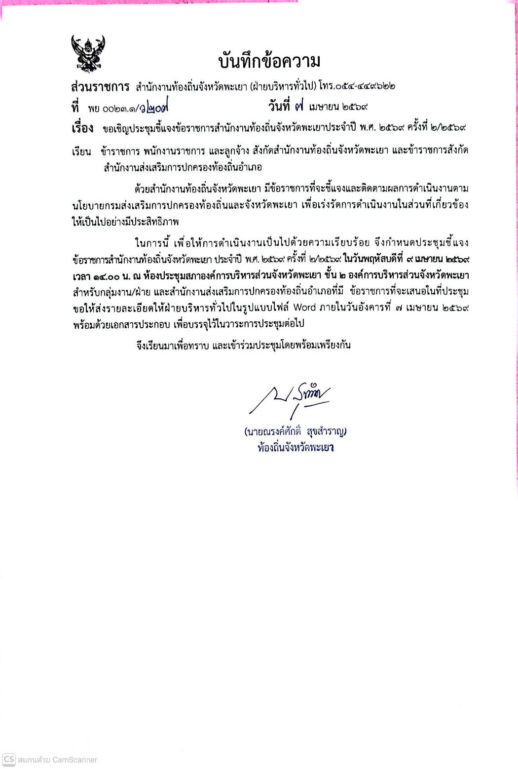 ขอเชิญประชุมชี้แจงข้อราชการสำนักงานท้องถิ่นจังหวัดพะเยา